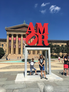 Philly day two started at the Independence Visitor Center to pick up our tickets for Independence Hall. We found this statue to be appropriate for the "City of Brotherly Love", and love the Hall in the background.